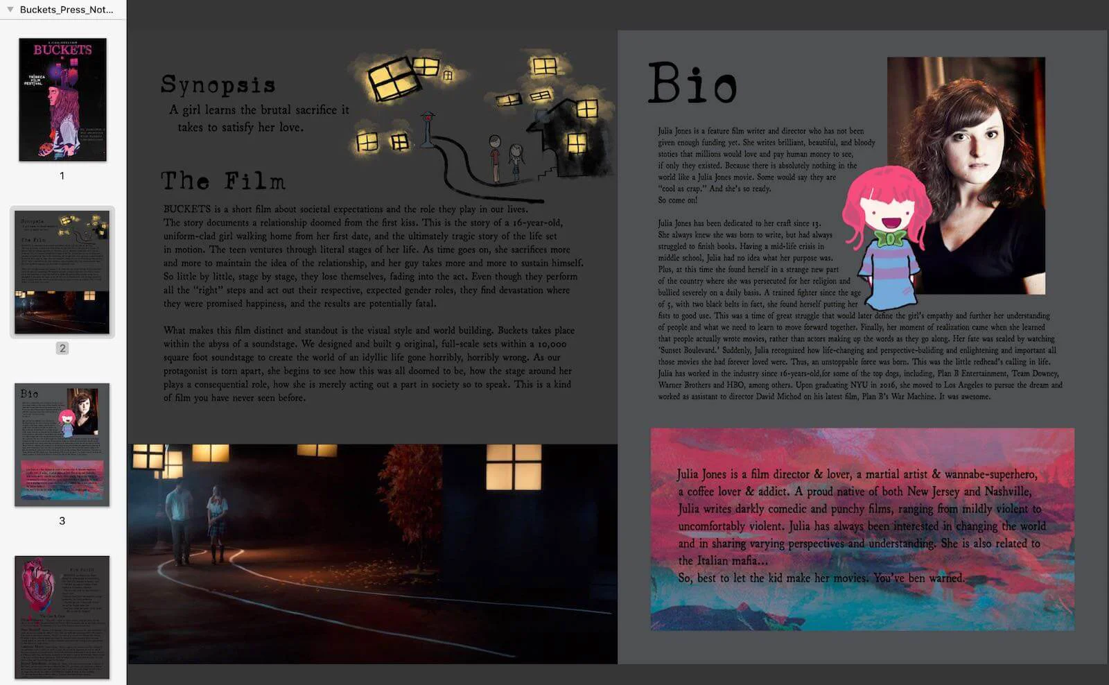 My last assignment for this project is the Press-Kit. Since we plan to submit the film for festivals, the press-kit will be useful for that.